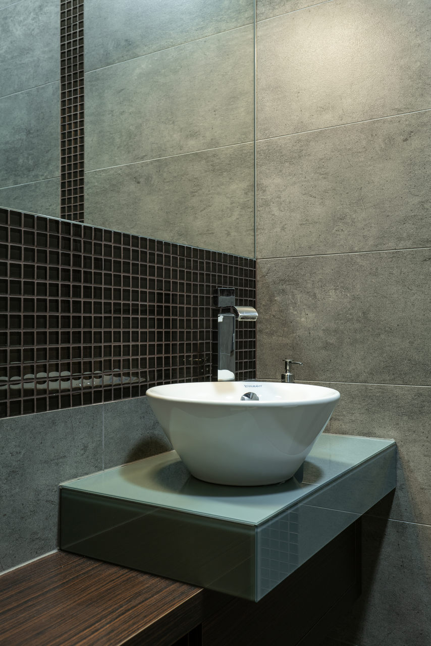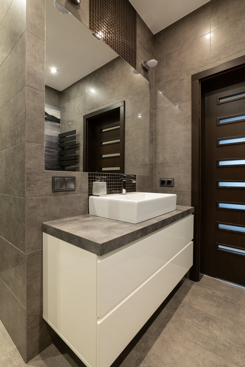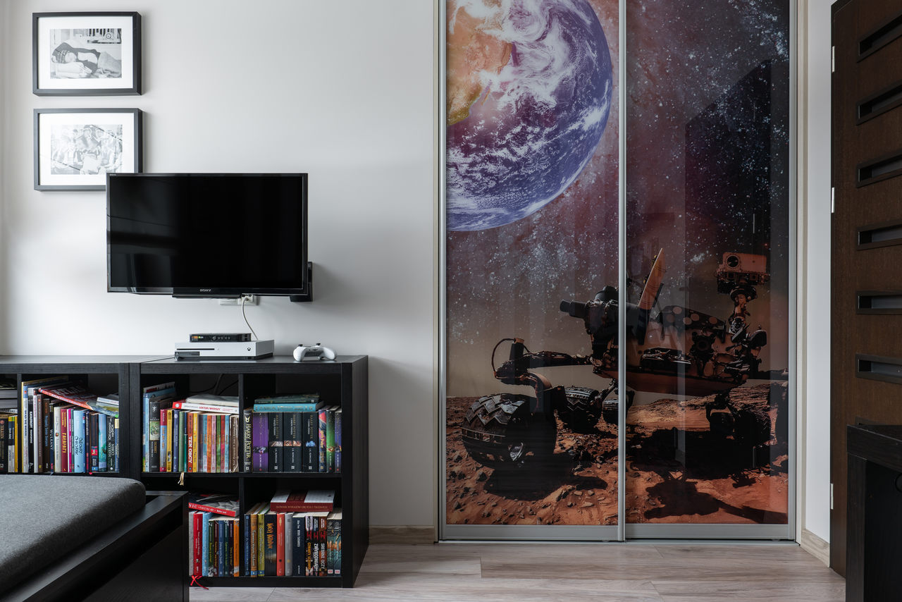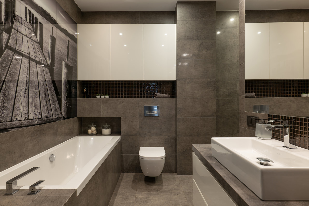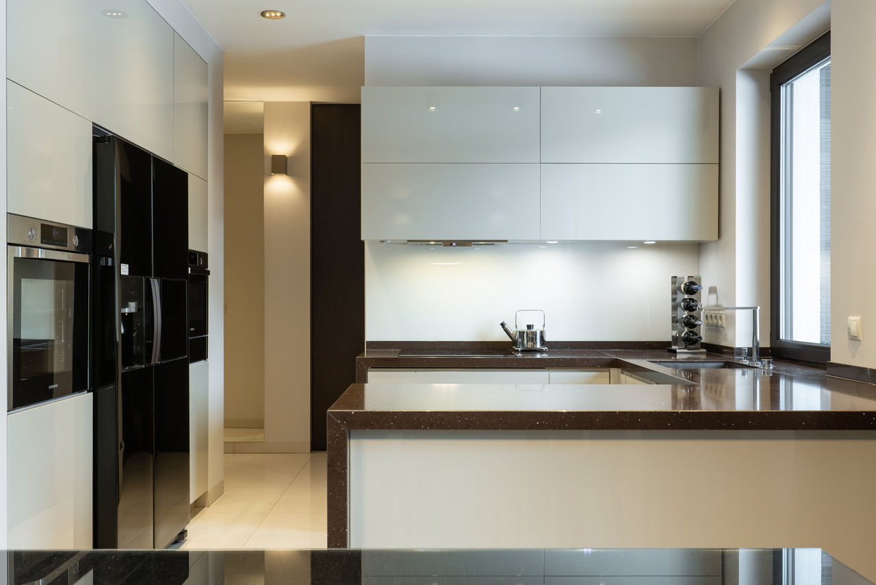 Zastosowane rozwiązanie: W tej realizacji wizualne wydzieliliśmy kuchnię otwierając ją jedynie na jadalnię z dużym rozkładanym stołem. Praktyczna przegroda z wysoką zabudową kuchenną oraz dużą lodówką z jednej strony stanowi też element ozdobny od strony przestronnego salonu w formie szklanej witryny. W części dziennej na posadzce położono jasny gres, natomiast w pokojach prywatnych panele podłogowe. W łazience rodzinnej znajduje się zarówno wanna jak i duży prysznic z ukrytymi półkami na kosmetyki. Wszystkie zaprojektowane wnętrza są stonowane, z ciemnymi akcentami kolorystycznymi w postaci mebli, stolarki drzwiowej i okiennej oraz dodatków.